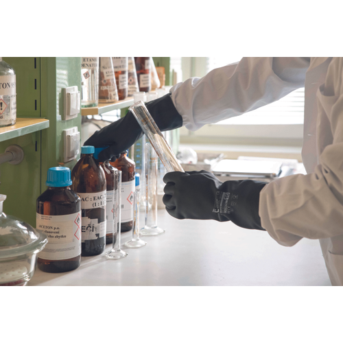 Rękawice z neoprenu o grubości 0,7 mm, z welurem wewnątrz, z szorstkowaną powierzchnią w części chwytnej dłoni i na palcach.