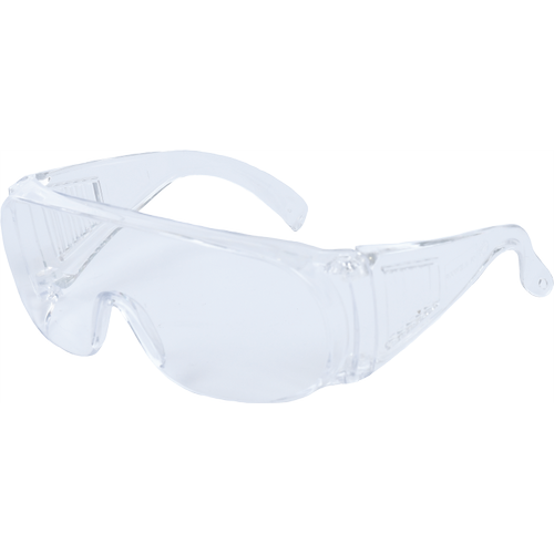 Okulary ochronne, bezbarwna panoramiczna szybka klasy 1F, dostosowane do noszenia okularów korekcyjnych.