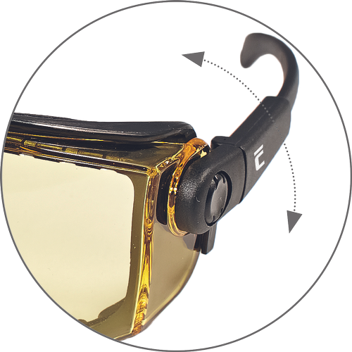 Okulary ochronne z szybkami poliwęglanowymi. Klasa ochrony – 1F zgodnie z normą EN 166. Kształt okularów oraz wyjmowane, miękkie wypełnienie zapewniają perfekcyjne dopasowanie. Żółte soczewki chronią przed promieniowaniem UV zgodnie z normą EN 170. Soczewki IR chronią przed promieniowaniem UV oraz widzialnym i niewidzialnym promieniowaniem podczerwonym zgodnie z normą EN 169.