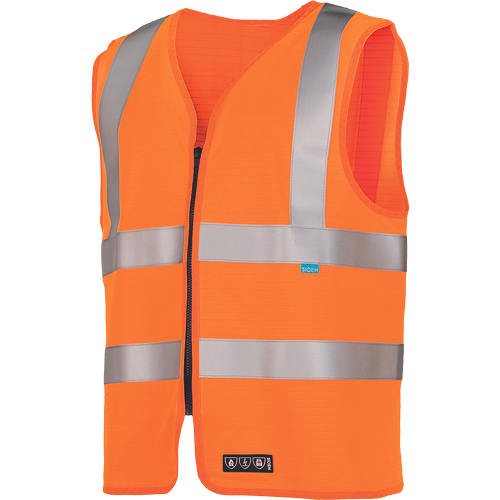 • flame retardant and anti-static HI-VIS waistcoat • V-neck • zipper closure • flame retardant 5 cm reflective tapes