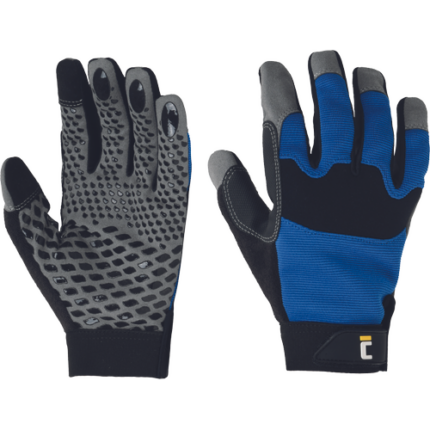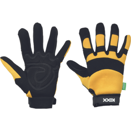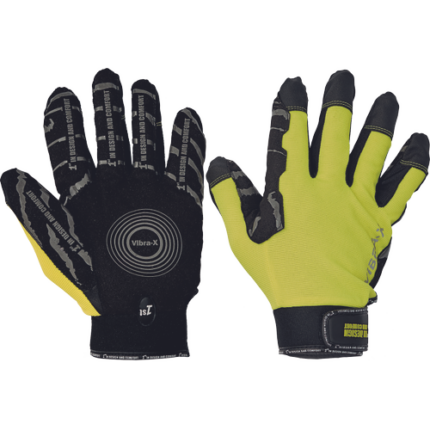 Rękawice wykonane z syntetycznej skóry w części chwytnej, wyposażone w panele pochłaniające drgania. Przeznaczenie: od lekkich do ciężkich prac. Zapięcie Velcro na nadgarstku zapewnia idealne dopasowanie. Grzbiet dłoni wykonany jest z elastycznego materiału. Rękawice spełniają wymogi normy EN 420 oraz EN 388: 2003.