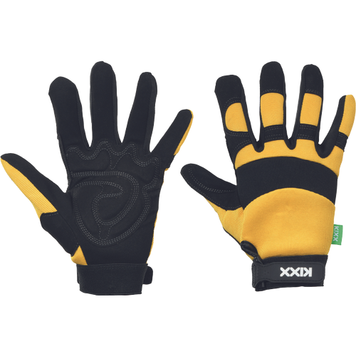 Rękawice wykonane z syntetycznej skóry w części chwytnej, wyposażone w panele pochłaniające drgania. Przeznaczenie: od lekkich do ciężkich prac. Zapięcie Velcro na nadgarstku zapewnia idealne dopasowanie. Grzbiet dłoni wykonany jest z elastycznego materiału. Rękawice spełniają wymogi normy EN 420 oraz EN 388: 2003.