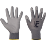 Dziane, bezszwowe rękawice poliestrowe, powleczone cienką warstwą poliuretanu w części chwytnej i na palcach. Elastyczny mankiet.