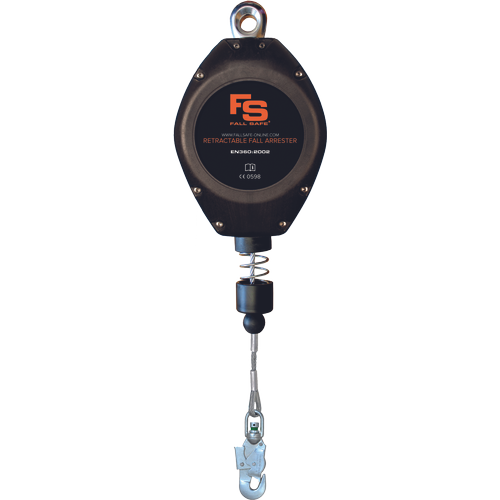 Fall arrest blocks are designed to be used as single person fall protection devices. Features a mobility enhancing swivel-top, a rugged and durable housing, and a unique braking system that eases shock in the event of a fall. High-strength polymer housing, diameter 4.5 mm galvanized steel cable, swivel steel snap hook with fall arrest indicator, energy absorber integrated at swivel hook.SPECIFICATIONS