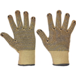 Dziane, oburęczne rękawice bezszwowe wykonane na bazie włółna Kevlar o średniej gramaturze, z nakropieniem z PVC w części chwytnej dłoni, na jej grzbiecie oraz palcach.