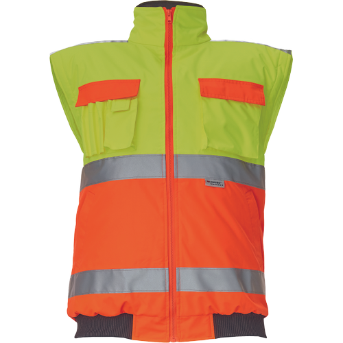 • ocieplana kurtka Hi-Vis z taśmami odblaskowymi • odpinane rękawy i kamizelka, która może być noszona oddzielnie • kaptur zintegrowany z kołnierzem • klejone szwy • taśmy odblaskowe 3M • wodoodporność 3 klasy i paroprzepuszczalność 1 klasy zgodnie z normą E i paroprzepuszczalność 1 klasy zgodnie z normą EN 343.