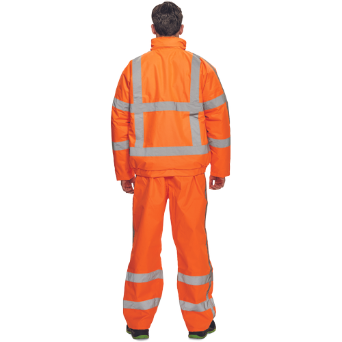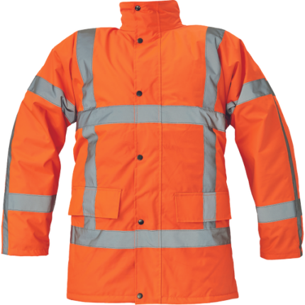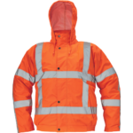 Szyte rękawice Hi-Vis z wodoodporną, oddychającą membraną, wykonane z poliestru z dodatkiem spandexu, w części chwytnej szybkoschnąca, synetyczna skóra z mikrofibry o grubości 0,8 mm, wposażone w piankę redukującą wibracje. W części chwytnej i na palcach zadrukowane wysokiej jakości silikonem. Opuszki palców pokryte syntetyczną skórą. Podszewka poliestrowa. Neoprenowy mankiet zapinany na rzep Velcro. Plastikowy haczyk z oznaczeniem rozmiaru. EN ISO 10819