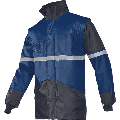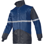 • men´s water resistant jacket with removable thermoinsulated inner jacket with detachable sleeves • foldaway hood in collar • 2 side pockets with velcro flap closure • 1 Napoleon zipper pocket • inside waist tightening • reflective details • inner jacket should be used as separate bodywarmer