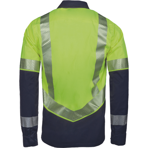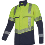 • męska koszula HI-VIS o właściwościach łukoochronnych, ognioodpornych i antystatycznych • zapięcie na zatrzaski ukryte pod patką • dobre właściwości regulacji wilgoci • 2 kieszenie napiersiowe zapinane na zatrzaski przykryte patką z kontrastową lamówką • wokół tułowia, rękawów i ramion nadrukowane taśmy odblaskowe • rękawy regulowane za pomocą zatrzasków