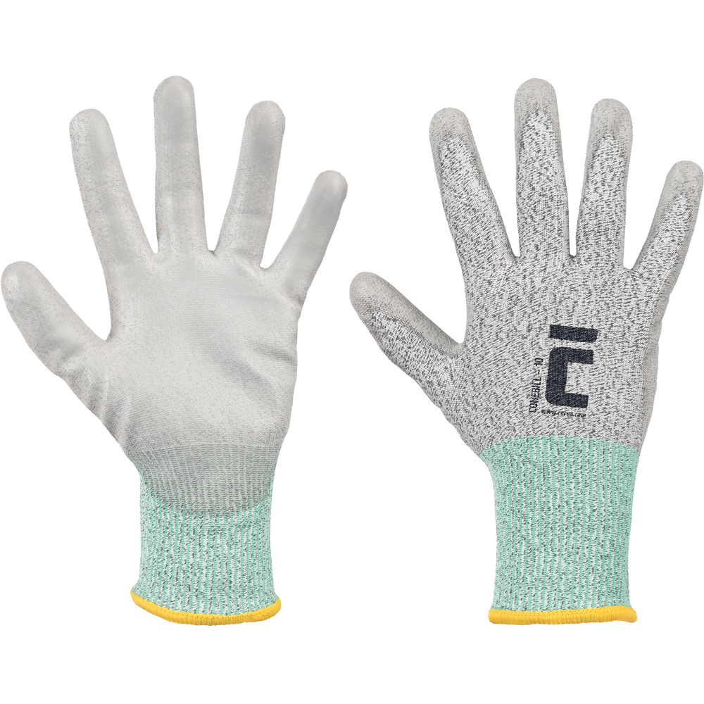• knitted seamless gloves • anti-cut level C • grey PU layer on palm and fingers