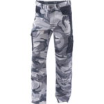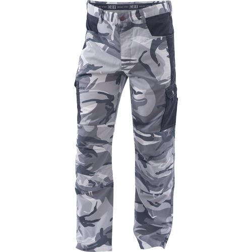 • męskie spodnie wykonane z lekkiego twillu 190 g /m² • 2 wielofunkcyjne kieszenie cargo • dwie boczne i dwie naszywane z tyłu • wzmocnienia na kolanach • doskonałe dopasowanie • efektowny wzór moro