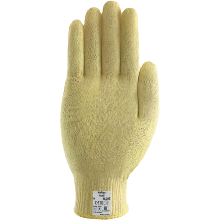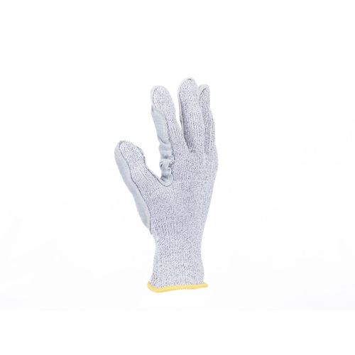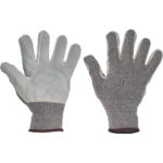 Dziane, bezszwowe rękawice z modyfikowanego włókna szklanego, Spandexu i nylonu, ze wzmocnieniem z dwoiny wołowej w części chwytnej dłoni i na palcach, z odpornością na przecięcie klasy E.