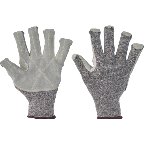 Rękawice ochronne szyte z wysokiej jakości koziej skóry w części chwytnej i bawełnianej dzianiny w części wierzchniej. Opuszki palców pokryte skórą. Mankiety zapinane na rzepy Velcro.
