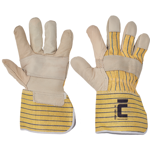 Rękawice wykonane ze skóry bydlęcej z podszewką i bawełnianym wierzchem. Mankiet o długości 10 cm.