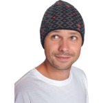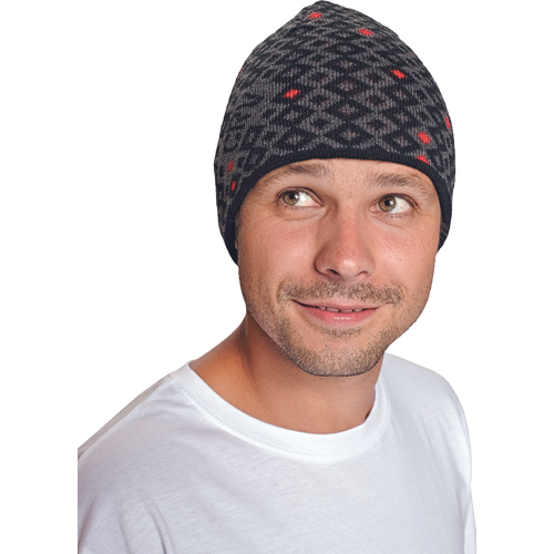 Dziana czapka w modne wzory, wzmacniana wiatroszczelną warstwą.