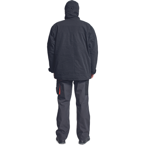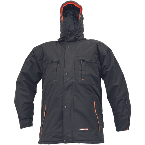 Antystatyczna, niepalna i odporna na czynniki chemiczne kurtka z bawełnianą, niepalną podszewką, kapturem w kołnierzu i podklejonymi szwami.