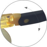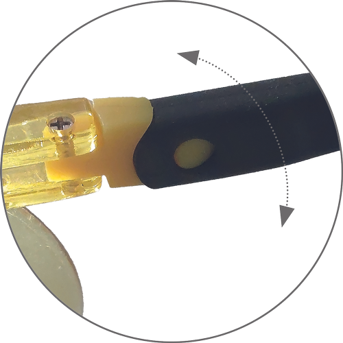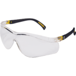 Okulary z szybkami poliwęglanowymi, regulowany kąt nachylenia i długość ramion, sportowy wygląd, szybki nieparujące i odporne na zarysowania, klasa F według normy EN 166 – ochrona przed odpryskami ciał stałych o niskiej energii uderzenia, klasa optyczna 1, żółte szybki z filtrem UV według normy EN 170.