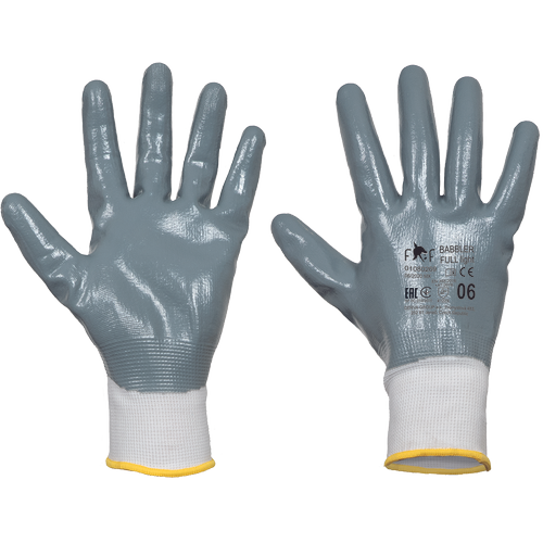 • seamless knitted polyester gloves fully dipped in nitrile