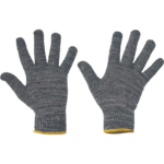 Rękawice dziane wykonane z mieszanki bawełny i poliestru.