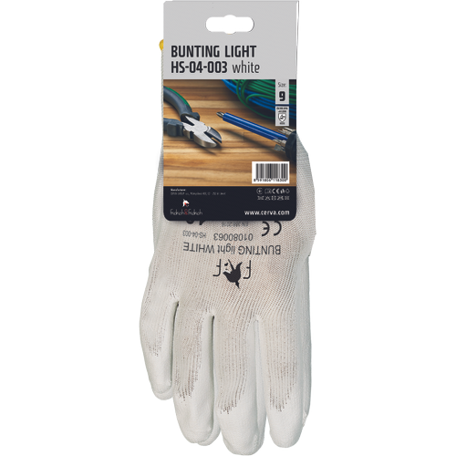 Bezszwowe, dziane rękawice poliestrowe w części dłonicowej i na palcach powlekane poliuretanem. Elastyczne mankiety.