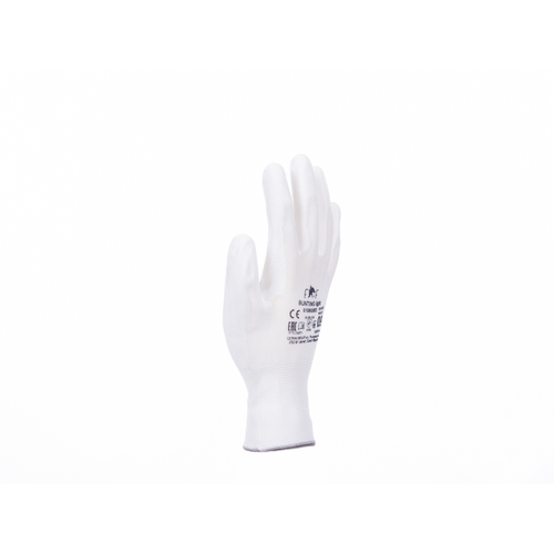 Bezszwowe, dziane rękawice poliestrowe w części dłonicowej i na palcach powlekane poliuretanem. Elastyczne mankiety.