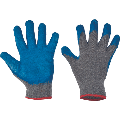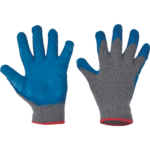 Dzianinowe rękawice bezszwowe wykonane z mieszanki bawełny i poliestru, powlekane lateksem • posiadają antypoślizgowe wykończenie w części chwytnej dłoni i palców.
