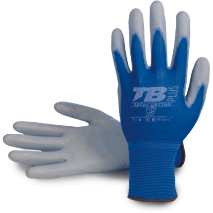 Dziane, bezszwowe rękawice poliestrem z włóknem węglowym, o właściwościach antystatycznych. Powleczone warstwą poliuretanu w części dłonicowej i na palcach; elastyczny mankiet.