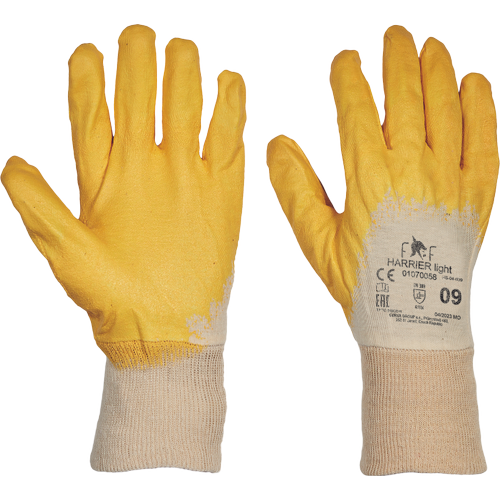 Rękawice szyte z dzianiny bawełnianej, powlekane nitrylem, wykończone elastycznym ściągaczem.