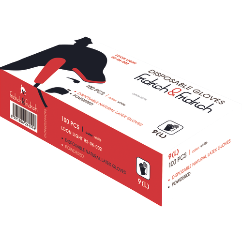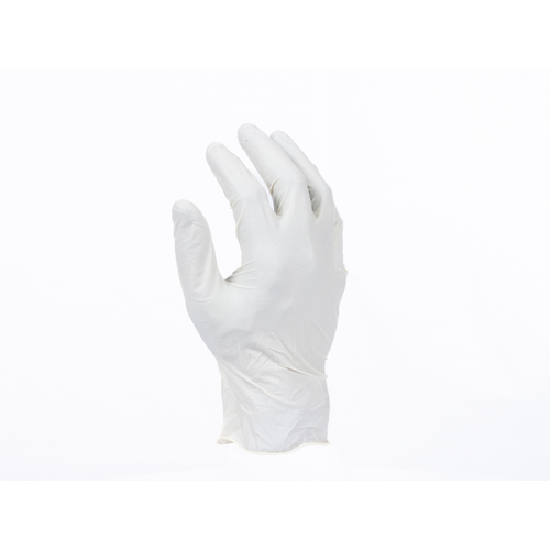 Jednorazowe, pudrowane rękawice lateksowe odpowiednie do krótkotrwałego kontaktu z tłustą żywnością.