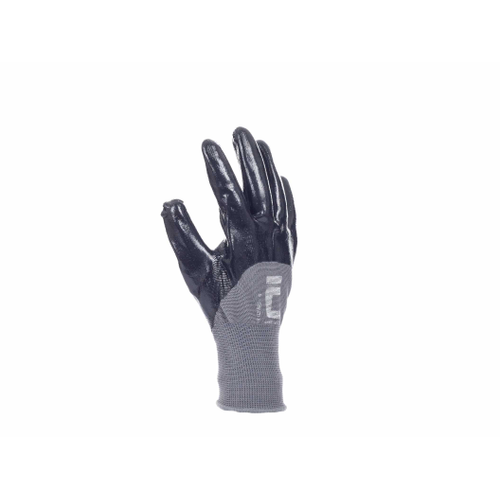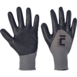 Dziane, bezszwowe rękawice 3, powlekane czarnym nitrylem w części chwytnej i na palcach, elastyczny mankiet.