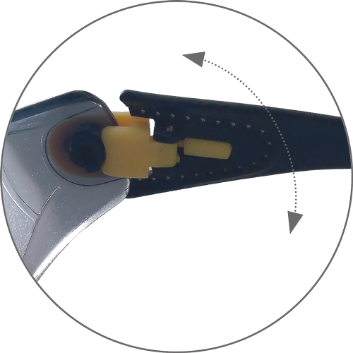 Okulary z szybkami poliwęglanowymi, regulowany kąt nachylenia i długość ramion, sportowy wygląd, szybki nieparujące i odporne na zarysowania, klasa F według normy EN 166 – ochrona przed odpryskami ciał stałych o niskiej energii uderzenia, klasa optyczna 1, szare szybki z filtrem UV według normy EN 172.