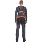 • spodnie ogrodniczki wykonane z unikatowej strechowej tkaniny zapewniającej dobrą oddychalność przy jednoczesnej wodoszczelności • z przodu u dołu użyto trójwarstwową tkaninę z membraną, która zapewnia wodoszczelność • kieszeń na klucz do piły mechanicznej umieszczonapo prawej stronie spodni • wodoszczelne zamki • odblaskowe dodatki • niska waga
