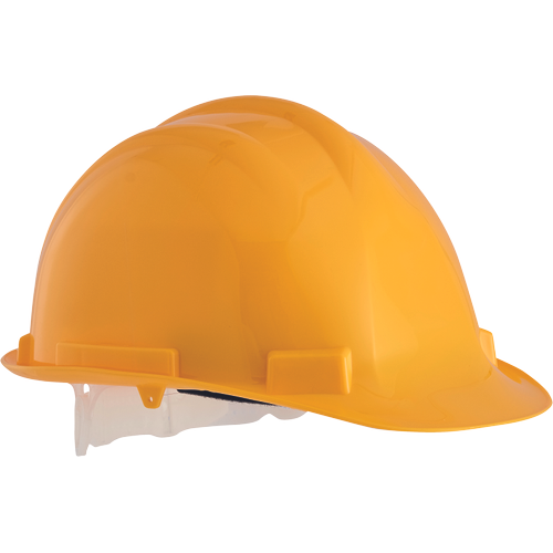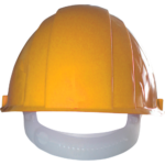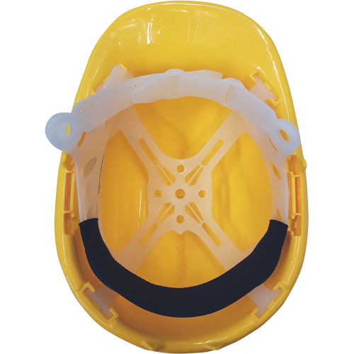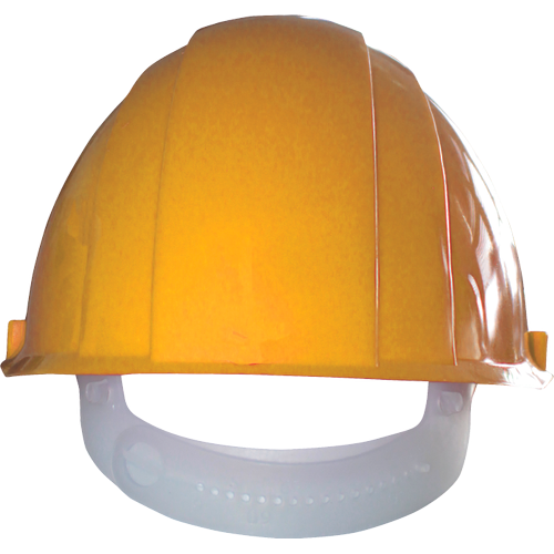 Polypropylene/ABS, equipped with slot for ear muff, 4-point mechanism, loose chin strap, light weight, shock absorber