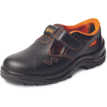 Sandały ochronne z metalowym podnoskiem, antystatyczną i antypoślizgową podeszwą PU/ PU odporną na olej, tłumienie w okolicach pięty, wykonane z oddychającej skóry.