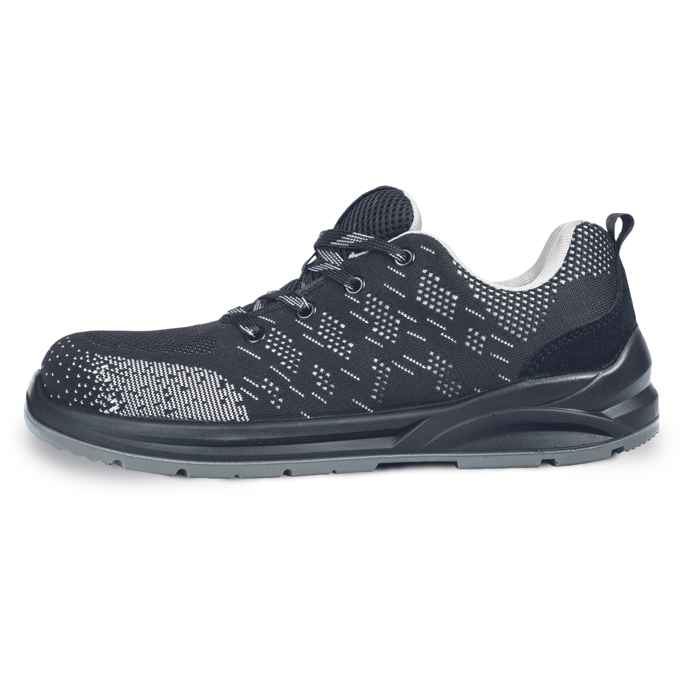 Półbuty bezpieczne spełniające normę EN ISO 20345:2022, klasa S3. Stalowa, antyprzebiciowa wkładka i podnosek ochronny. Podeszwa wykonana z poliuretanu podwójnej gęstości.