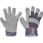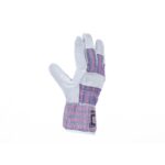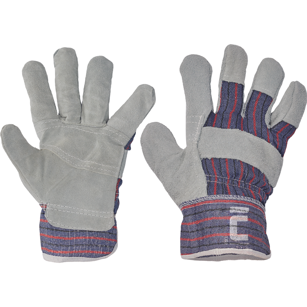 Rękawice wzmacniane dwoiną bydlęcą, z podszewką w części chwytnej dłoni, grzbiet oraz mankiet bawełniane.