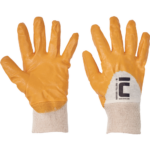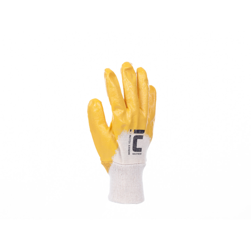 Rękawice szyte z bawełnianej dzianiny, powleczone nitrylem, z elastycznym ściągaczem.