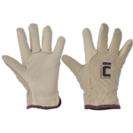 Całoskórzane rękawice ze skóry licowej świńskiej w części chwytnej dłoni oraz dwoiny świńskiej na grzbiecie dłoni, z ciepłą podszewką.