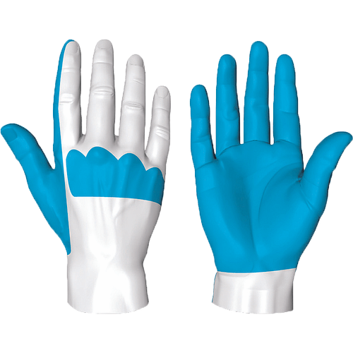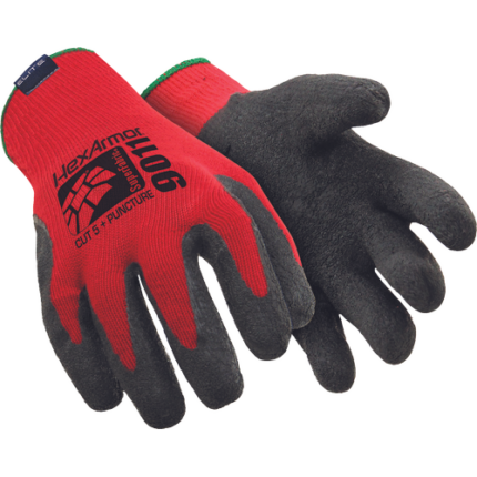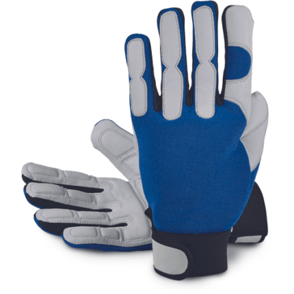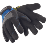 Rękawice z syntetycznej skóry w części chwytnej dłoni i na palcach, z nylonu i Spandexu na jej grzbiecie, z patentową wkładką przeciw przekłuciu i przecięciu w części chwytnej dłoni, palcach i stawach, z poliestrową podszewką i ściąganym mankietem na rzep, można prać w pralce.