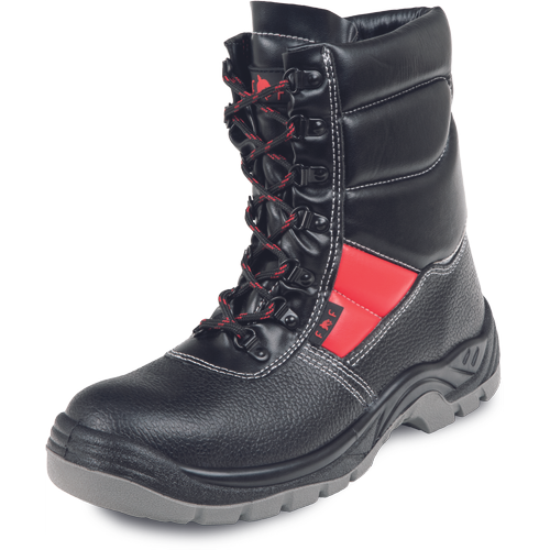 Wysokie trzewiki ochronne ze stalowym podnoskiem i stalową wkładką antyprzebiciową. Antystatyczna, olejoodporna podeszwa wykonana z PU/ PU. Absorpcja energii w obcasie. Cholewka wykonana z czarnej, wodoodpornej zadrukowanej skóry typu Buffalo. Od wewnątrz ocieplane, wyściełane szarym, sztucznym futerkiem.