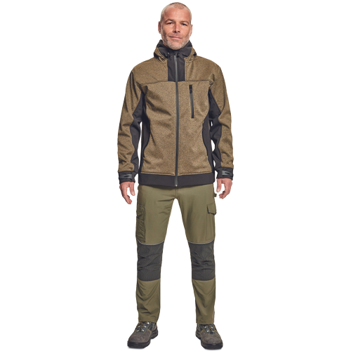 • męska kurtka softshellowa z kapturem zapinana na suwak • wodoodporna, oddychająca membrana • 2 kieszenie boczne zapinane na suwak • 1 kieszeń napiersiowa zapinana na suwak • mankiety regulowane na rzepy • elastyczny sznurek w kapturze