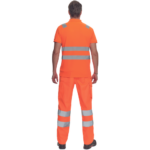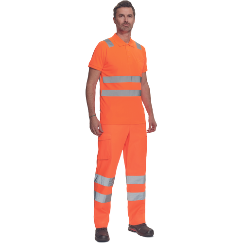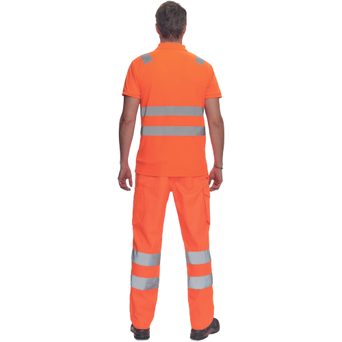 • w pełni ostrzegawcza koszulka polo z odblaskowymi taśmami o szerokości 5 cm na ramionach i na obwodzie, zapięcie na 3 guziki, dziany kołnierzyk i obszycie rękawów
