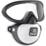 Gogle ochronne, szybka z zabezpieczeniem przed zaparowaniem. Półmaska FFP2 z zaworem wydechowym. EN166.1.B.T
