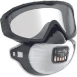 The unique patented FilterSpec® Pro™ effortlessly combines both eye & respiratory protection. The 5.5 base one piece polycarbonate lens offers optimal coverage and class 1 optics whilst ergonomically shaped soft goggle housing provides excellent levels of comfort and unbeatable levels of protection. Anti-Scratch coating as standard. FFP3V filtration giving 94% efficiency. FilterSpec® out exceeds EN 149 for breathing resistance by more than HALF and performs over 3% above the standard for filtration efficiency. Includes black holder, 3 filters and spectacle with Clear HC & Anti-Mist Lens.