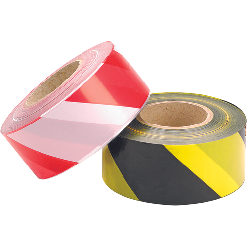 Taśma ostrzegawcza o szerokości 7 cm w kolorach: czerwono-białym lub czarno-żółtym na rolkach o długości 50m, 100 m i 500 m.