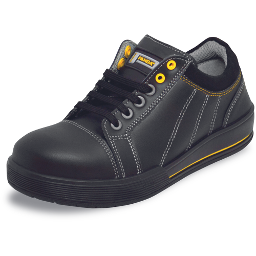 Bezpieczne półbuty typu "Sneaker" z niemetalowym podnoskiem i aramidową wkładką antyprzebiciową. Antypoślizgowa podeszwa PU / PU, olejoodporna. Absorber energii w części piętowej. Cholewka wykonana z wodoodpornej, wysokiej jakości skóry licowej. Obuwie bez elementów metalowych.