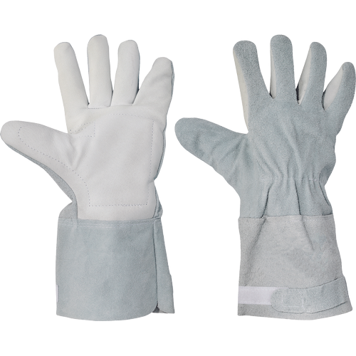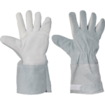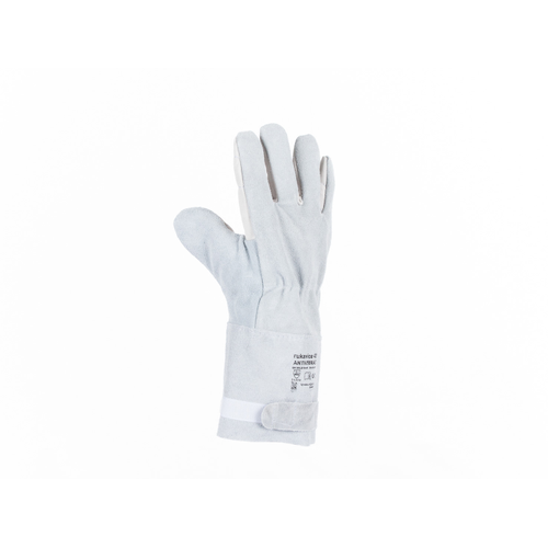 Całoskórzane rękawice antywibracyjne. Wykonane z mieszanki skór bydlęcych: miękkiej licowej oraz dwoinowej. Luźny mankiet. Bawełniana podszewka.