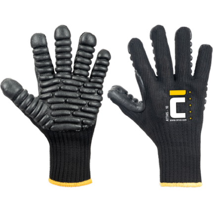 Rękawice wykonane z syntetycznej skóry w części chwytnej wyposażone w panele pochłaniające drgania. Przeznaczenie: od lekkich do ciężkich prac. Zapięcie Velcro na nadgarstku zapewnia idealne dopasowanie. Grzbiet dłoni wykonany jest z elastycznego materiału. Rękawice spełniają wymogi normy EN 420 oraz EN 388: 2003.