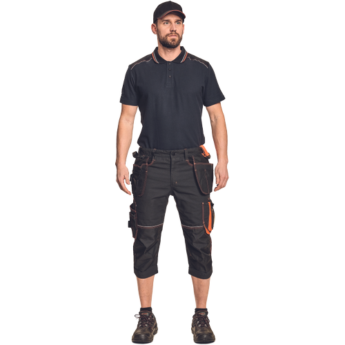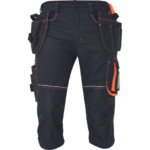 • męskie spodnie robocze 3/4 z elastyczną talią • 2 boczne kieszenie • 2 kieszenie narzędziowe na przedzie + 2 pętelki na narzędzia • 2 boczne kieszenie na nogawkach + 1 przezroczysta kieszeń na identyfikator • D- ring • 2 kieszenie z patkami z tyłu • w pasie pętla narzedziowa w kontrastowym kolorze • wzmocnione części kolanowe z wkładką na nakolanniki • dekoracyjne przeszycia w kontrastowym kolorze hi-vis