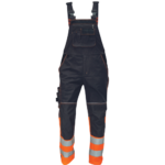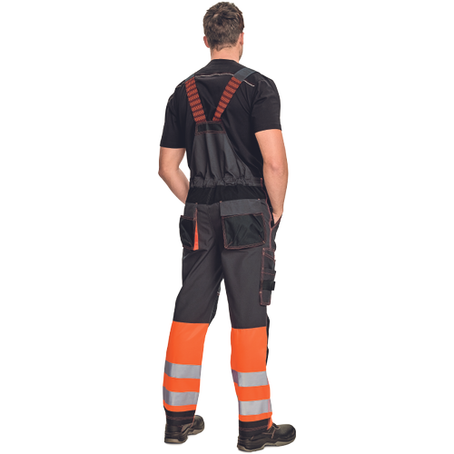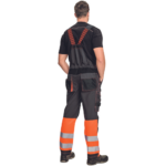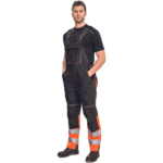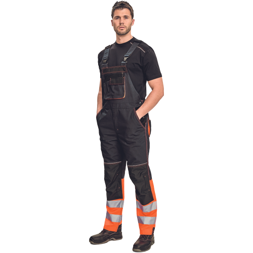 • high quality men's working bib pants in combination with HI-VIS fabric in the bottom of the legs and 2 reflective stripes • elastic braces and waist • 6 functional pockets, 600D Oxford reinforced knee parts for knee pads insertion • extendable length of legs of 5 cm • decorative stitching and contrast details in HI-VIS colour